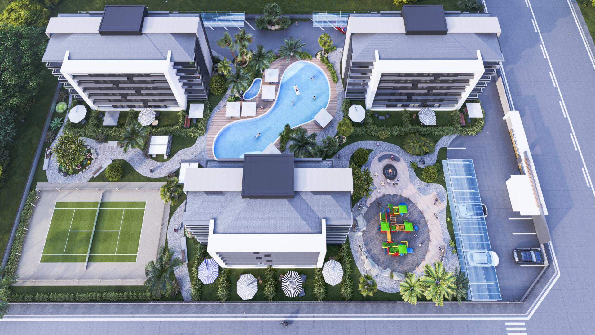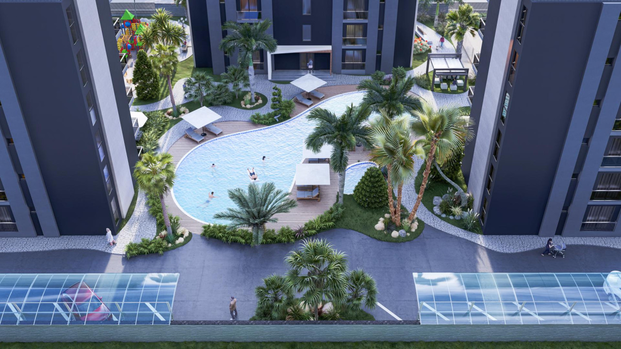LARA VILLE PROJECT IN ANTALYA LARA CITY RISES ON A LAND AREA OF 4400 M2 AND CONSISTS OF 3 RESIDENTIAL UNITS WITH 72 APARTMENTS, RANGING FROM 1+1 TO 2+1.